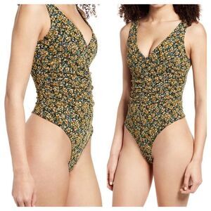 Leith Sleeveless Ruched V-Neck Bodysuit Size XXS