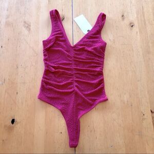 Leith Sleeveless Ruched V-Neck Bodysuit Size XXS