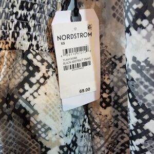 Leith smocked waist long sleeve mini dress in black abstract snake pattern Size XS NWT 100% Polyester