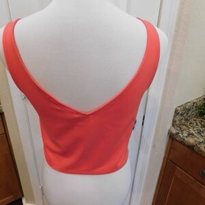 Deep front and back V- necklines flatter from all angles in a vibrant stretch-knit crop top that pairs seamlessly with high-rise bottoms.