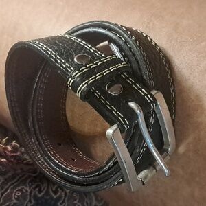 Classic black leather belt with a sleek design. Perfect for any occasion. Made in America Western Cowboy Silver Big and Tall Preowned