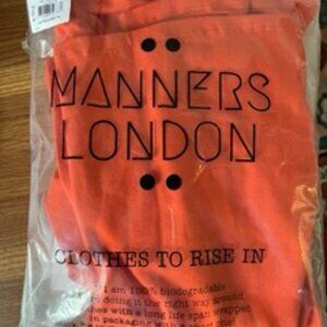 Brand new, just tried on once-- I can't send it back to the UK so I am stuck with it! Nothing's wrong with it, it's just a little more constrictive than I thought it would be. Save yourself the shipping and get a Manners top from within the US!