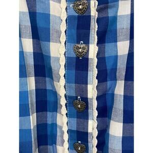 Lekra Country Life Square Dance Blue Gingham Blouse Shirt