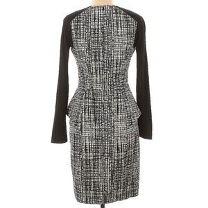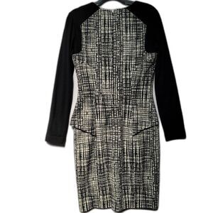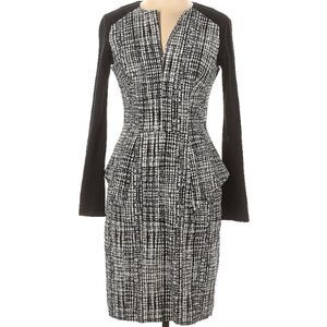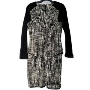Lela Rose Black and White V Neck Long Sleeve Back Zip Pencil Silk Lined Dress 8