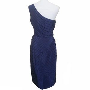 Lela Rose Blue Silk One Shoulder Cocktail Dress 8