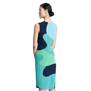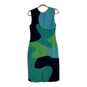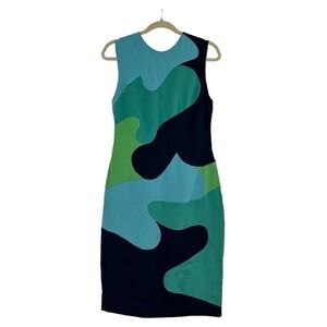 Lela Rose Colorblock-Camouflage Sheath Dress 100% Silk Career Dress Size 8
