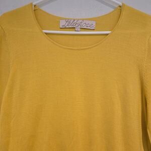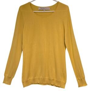 Lela Rose Designer 100% Silk Jersey Yellow Round Neck Pullover Sweater, Sz Large