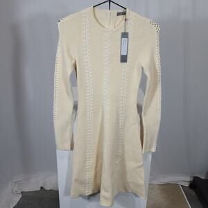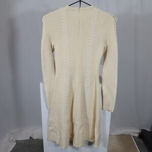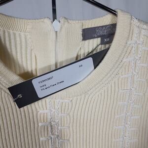Embroidered Seam Rib Knit Fit and Flare Dress, Hidden back zip closure, Viscose.
