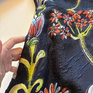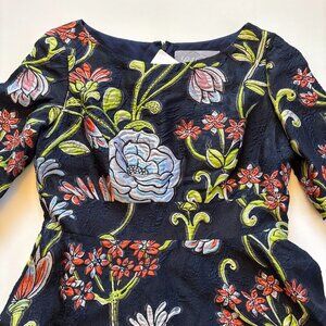 Lela Rose Floral Flare Embroidered Dress Short Sleeve Cocktail Wedding Silk