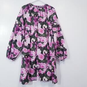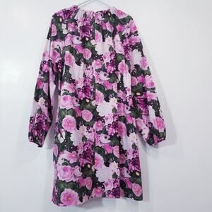 Lela Rose Floral Print Long Sleeves Rosette Shift Dress