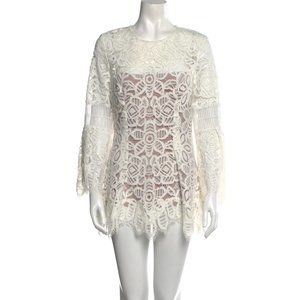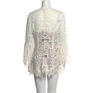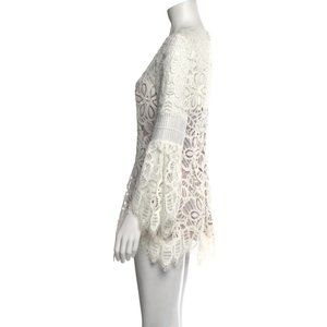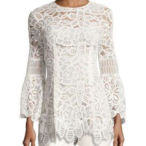 Lela Rose White Illusion Floral Corded Lace Tunic Top