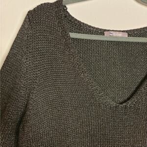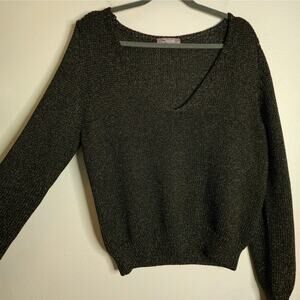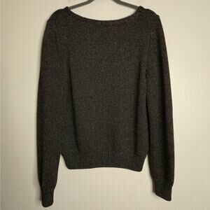 Lela Rose Metallic Black V-Neck Pullover Sweater Size XL Elevated Basic Chic