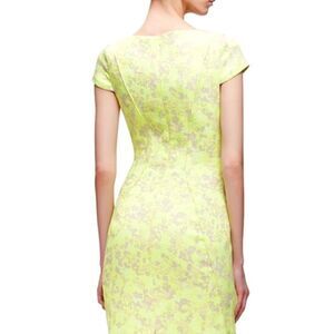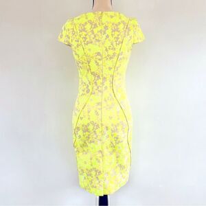 Lela Rose Neon Yellow Citrine Cap Sleeve Floral Print Sheath Dress Sz S