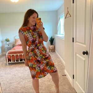 I adore this super bright and fun high end designer Lela Rose cocktail sheath style high neck mini/knee length gown/dress