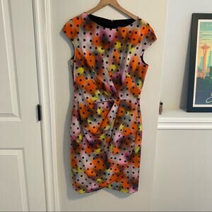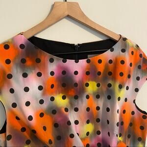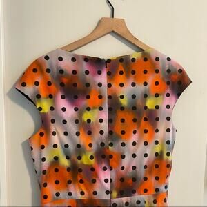 Lela Rose Red Pink Yellow Polka Dot Sheath Mini Dress 12