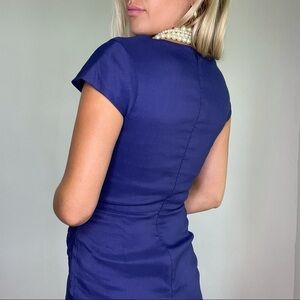 Lela Rose Royal Blue Linen & Silk Sheath Dress 4