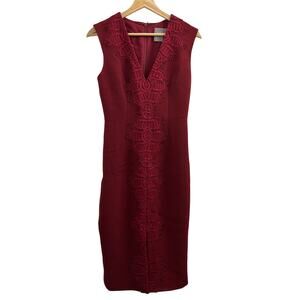 Lela Rose Sleeveless Sheath Dress Lace Detail Burgundy Red size 2
