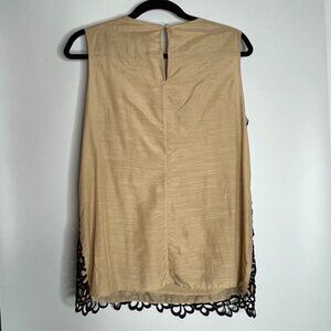 Lela Rose Target Neiman Marcus Crochet Lined Sleeveless Blouse Black Tan Large