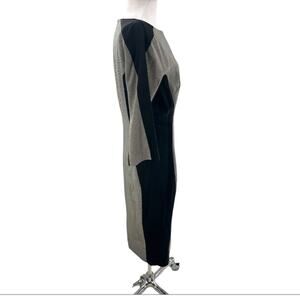 Excellent preowned condition, missing size and fabric content tags. Was able to locate the make up of this style, the houndstooth is wool and the panels have some stretch so a blend. It is lined with silk. Measurements are in the photos looks around a size 6 for the brands size chart