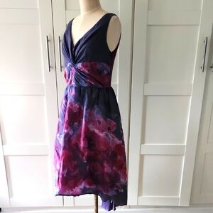 Lela Rose x Target Dress sz 12 Purple Floral Watercolor Silk Blend Asymmetrical