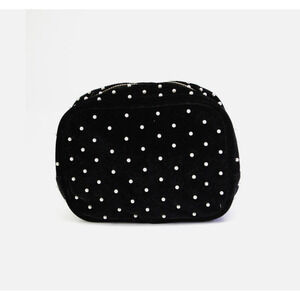 Elegant Lele Sadoughi velvet makeup bag featuring signature pearl embellishments and gold zipper detail. Perfect for travel or organizing accessories in style. Lined interior with secure closure. Pairs beautifully with Lele Sadoughi’s iconic pearl headbands. Chic, timeless, and gift-ready.