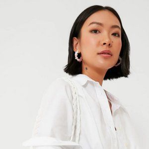 In shades ranging from bright white to shell pink, the Candy Beaded Medium Hoops are absolutely fabulous for finishing off any outfit. In a classic shape that will never go out of style, these earrings pack a fun and beachy punch while maintaining a luxurious feel. Versatile as ever, you can pair these with anything from a button down and a basket bag to hit up the farmers' market to a flowing maxi dress for a seaside cocktail party.