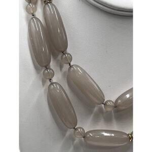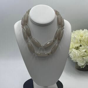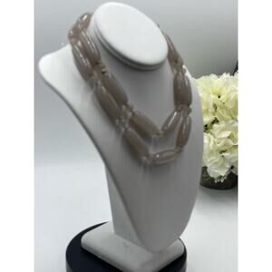 Lele Sadoughi Designer Signed Taupe Tan Agate cylinder Beaded Round beads, rondelle spacers Long Necklace