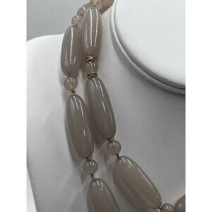 Lele Sadoughi Designer Signed Taupe Tan Agate Beaded Long Necklace