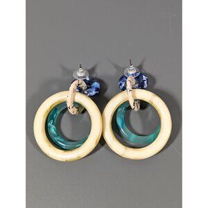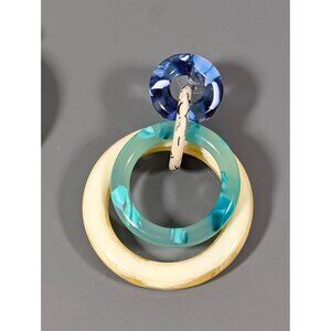 Lele Sadoughi Double Ring Drop Earrings Blue Green Oversized MINT