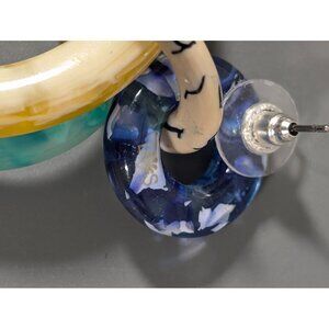 Elevate your style with these Lele Sadoughi Double Ring Drop Earrings in vibrant blue and green. Oversized for a bold statement, they are perfect for any occasion and in mint condition.