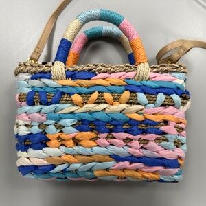 Lele Sadoughi- Maya Hand Woven Straw Mini Tote - Coastal