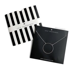 Lele Sadoughi Circle Necklace showcasing a silver-plated disk and a delicate chain. The necklace features a 19-inch length with a 3-inch extender, ensuring a perfect fit. Brand new and delivered in original packaging.