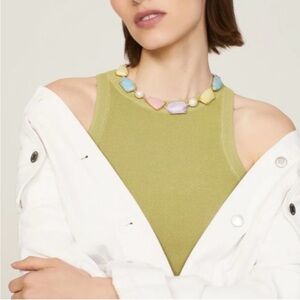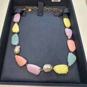 Lele Sadoughi Statement Necklace Colorblock Stones Pearls Pastel Chunky Gold Y2K