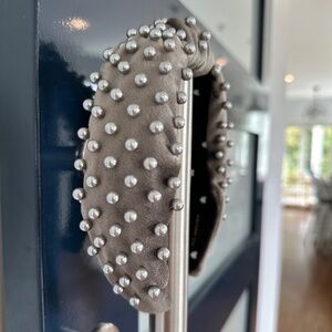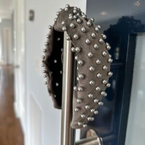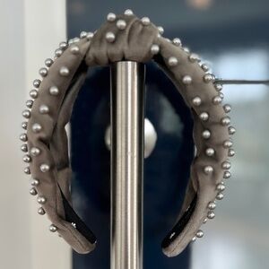 Lele Sadoughi Velvet Faux Pearl Knotted Headband, Grey