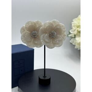 Lele Sadoughi Zinnia White Iridescent Mother of Pearl Large Petal Floral Earring