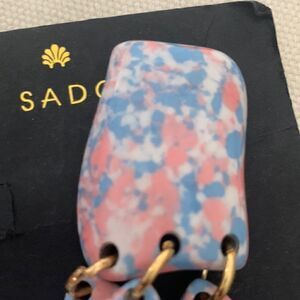 TAGS: lele sadoughi garden iris earrings, clip on flower earrings, howlite petal drop, mosaic sunset blue earrings, pink marbleized stone earrings, boho statement jewelry, romantic floral earrings, springtime accessories, anniversary gift, birthday jewelry, outdoor party earrings, preppy eclectic jewelry, whimsical earrings, unique floral jewelry