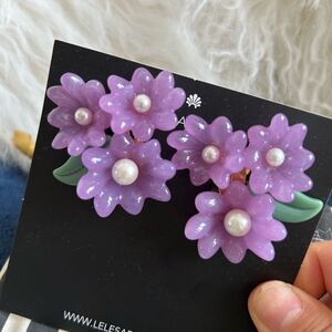 Lele Sadoughi NWT Petunia Bouquet Clip-On Earrings in Lavender/Green