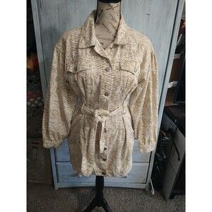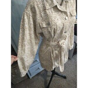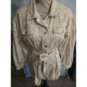This Le Lis denim jacket dress is perfect for any occasion. The animal print and puff sleeve design make it a trendy and fashionable piece, while the belted feature and button closure add a touch of sophistication. The dress is made of 100% cotton, making it comfortable and breathable to wear.