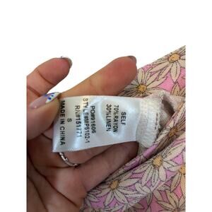 Lelis Floral Linen Blend Pink Daffodil Pants Woodstock Retro Boho Western S
