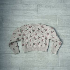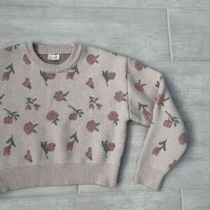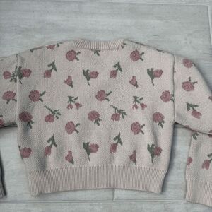 Lelis Light Pink Floral Sweater Rose Dusty Blush Crop Long Sleeve Drop Shoulder