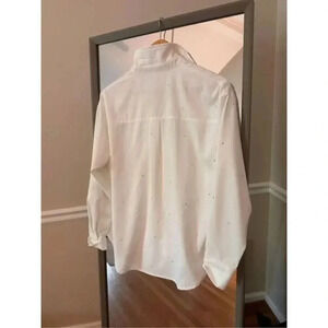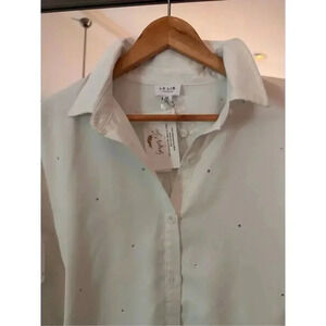 Add effortless sparkle to your wardrobe with this Lelis sequin button down shirt, brand new with tags (retail $70). Crafted in crisp white fabric with subtle silver sequin accents, this blouse elevates any look with understated glamour. Designed with a relaxed fit, collared neckline, and long sleeves, it’s perfect for work-to-evening transitions, holiday parties, or stylish everyday wear.