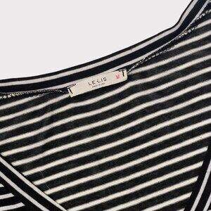 Lelis Soft Thin Striped Polka Dot Top Large V Neck 3/4 Sleeves