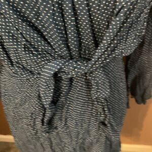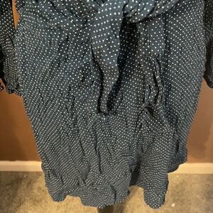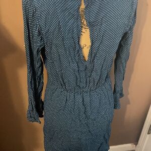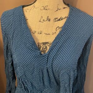Lelis Polka Dot Dress NWOT never worn blue with white polka dots no stains or holes size small loose fitting dress long sleeves Vneck open to reasonable offers. 100% rayon self 100% polyester < lining