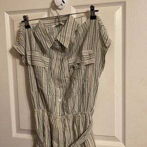 Lelis Romper Plaid Style Cream&green Striped SIZE SMALL NO HOLES OR STAINS Boutique item