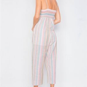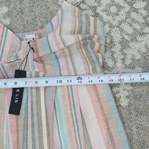 Gorgeous all the way across lined with rayon down to hips and polyester cotton material self. Adjustable straps 44 in total length and 23 in inseam. Refer to pictures.