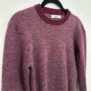 Lello Maroon Birds Eye Knit 100% Wool Mens Crew Neck Sweater Small