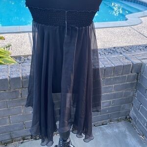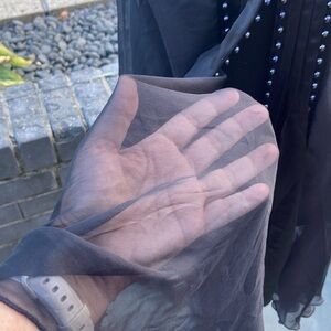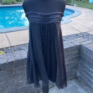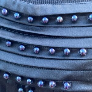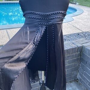 Lelo Black Sheer top NWT with front slit and pearl accents Small