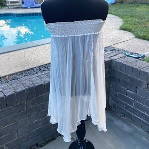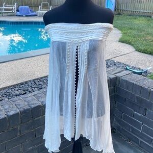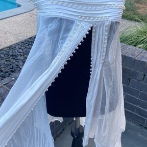 Lelo Off White Sheer top with front slit and pearl accents Small