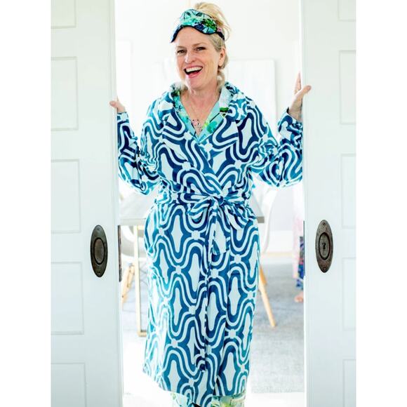 Lelsey Evers Womens Tiffany Robe in Waterloo Teal Size Medium / Large
