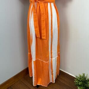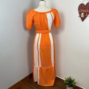 LemLem Hand Crafted Zoya Orange Stripe Maxi Short Sleeve Beach Dress Small NEW